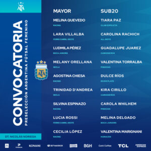 El entrenador Nicolás Noriega y su cuerpo técnico, convocaron a jugadoras del futsal local para trabajar en el predio Lionel Andrés Messi con vistas a la Copa del Mundo, que se disputará del 21 de noviembre al 7 de diciembre en Manila, Filipinas. Argentina compartirá el grupo A con el equipo anfitrión, Polonia y Marruecos.